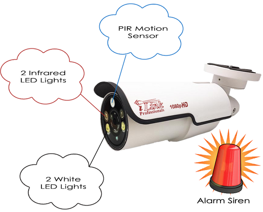 Security Camera Motion activated with strobe and siren ( iHDIRBFIOPIR-1080) A porch pirate deterrent